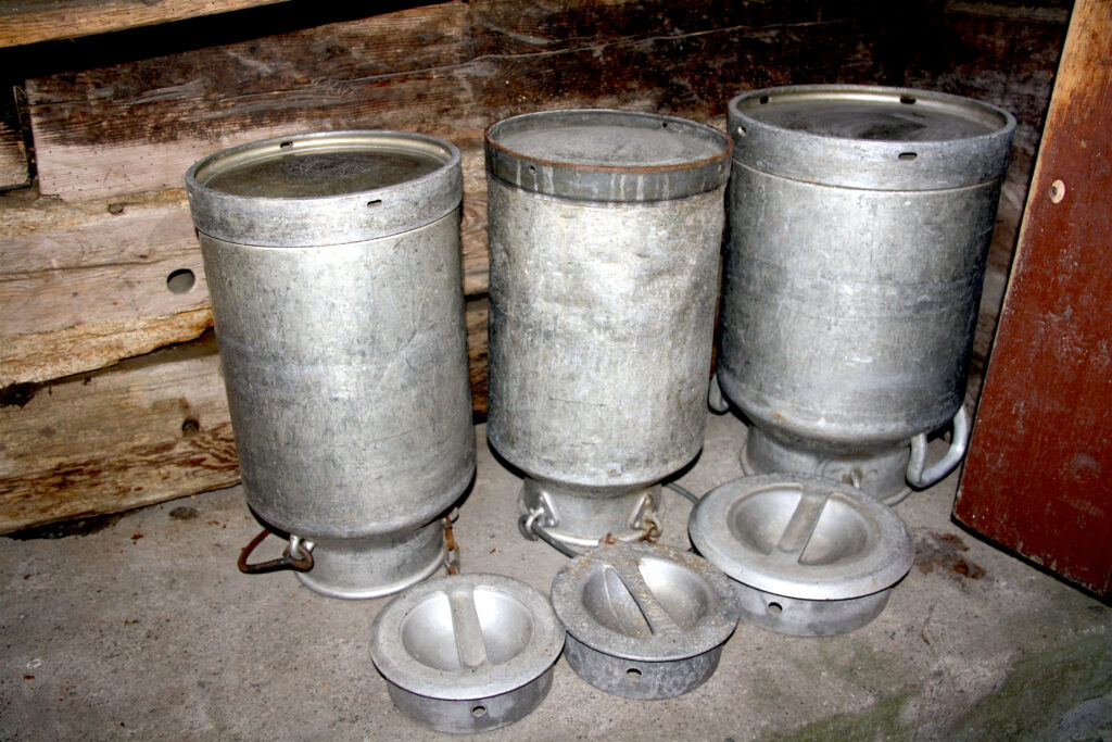MANY OBJECTS: In Vigatunet, you will find around 2000 objects related to life on the farm, including these milk cans. (Photo: Morten Hetland)