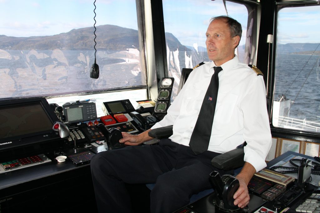 TRUFAST KAPTEIN: Helge Røgenes har vore kaptein i Jøsenfjord-sambandet i nesten 30 av sambandet si 50 år lange historie. I mars hadde han sine siste arbeidsdagar på MF «Hjelmeland». (Foto: Morten Hetland)