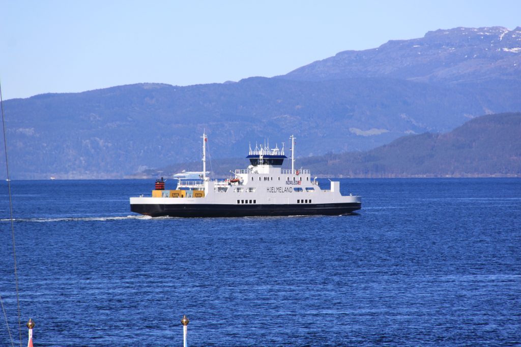 «HJELMELAND» II: Den nyaste MF «Hjelmeland» har gått i Jøsenfjord-sambandet sidan 1993, og har romma 85 pbe sidan påbygginga av nytt faldedekk i 2007. (Foto: Morten Hetland)