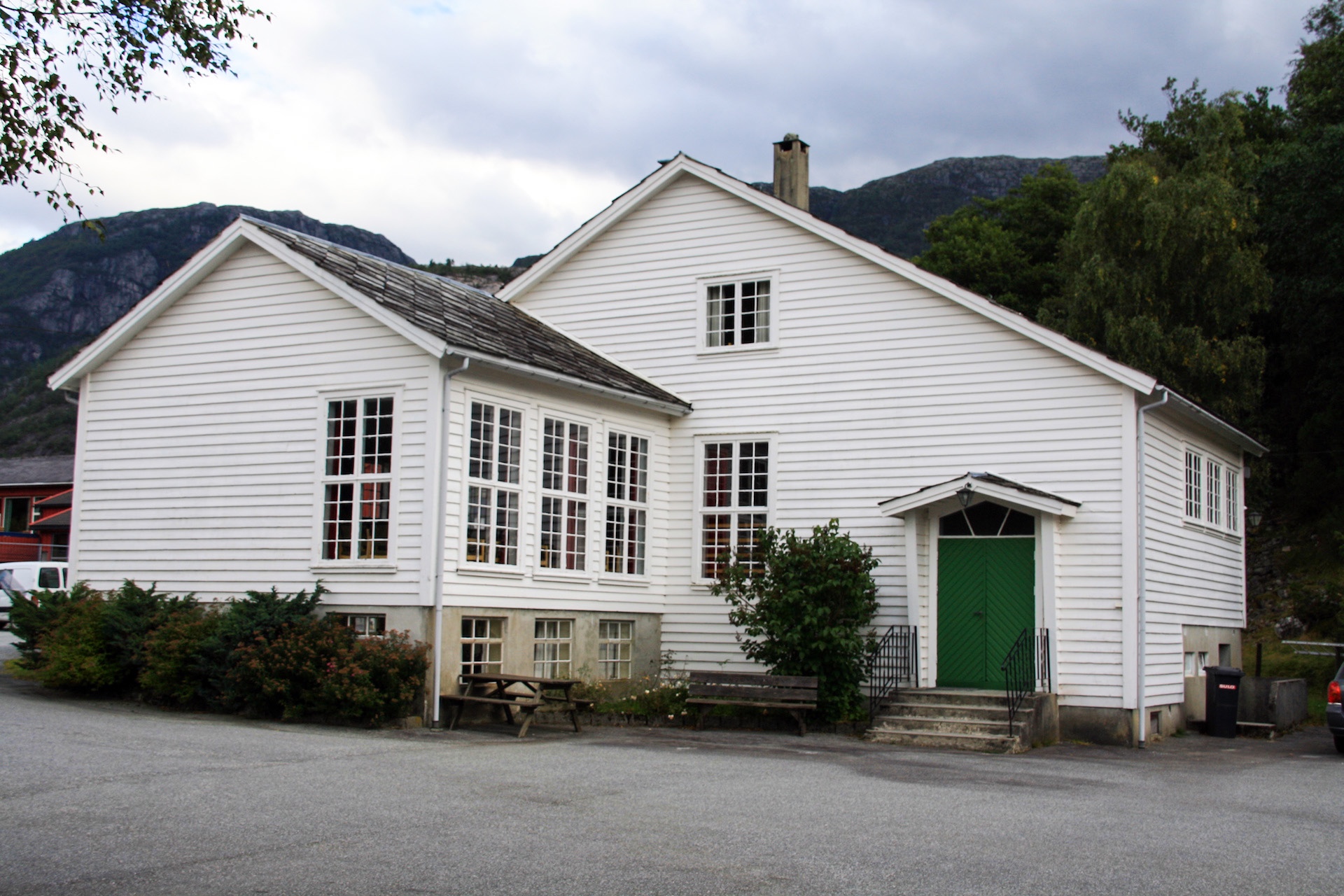 The chapel is located just above Fjordahuset community house and Jøsenfjorden kindergarten.