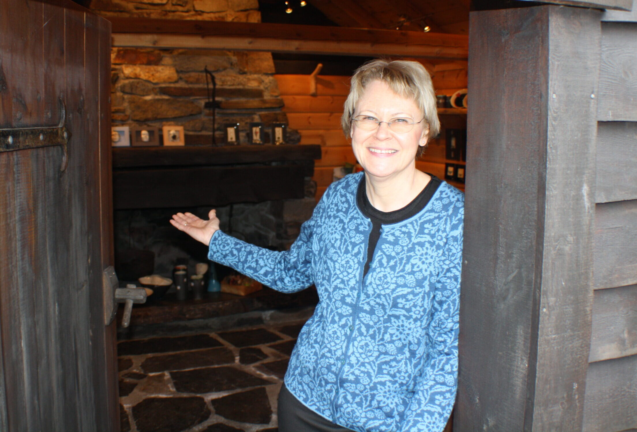 – Eldhuset vart seinare berre brukt til familiesamkomer, men sist vinter fekk eg lyst til å gjera eldhuset om til eit kunstgalleri. Utstoppa dyrehovud og antikvitetar vart flytta inn i løa, og eg byrja å tilpassa eldhuset innandørs, fortel Hanne Sundbø, som har brukt våren på å gje den 24 kvadratmeter store bygningen eit ansiktsløft av dimensjonar.